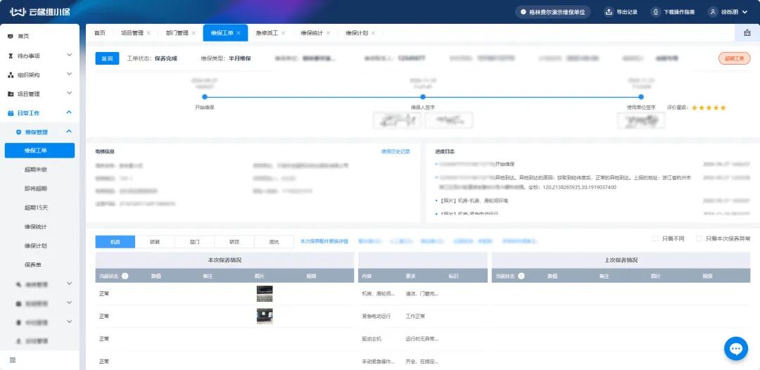 推出云梯維小保平臺,實現維保任務線上派發、過程視頻記錄、數據云端存儲。維保人員通過手機APP完成標準化作業,系統自動生成合規報告,杜絕“紙面維保”亂象。目前該平臺已在全國多個城市落地并投入使用。