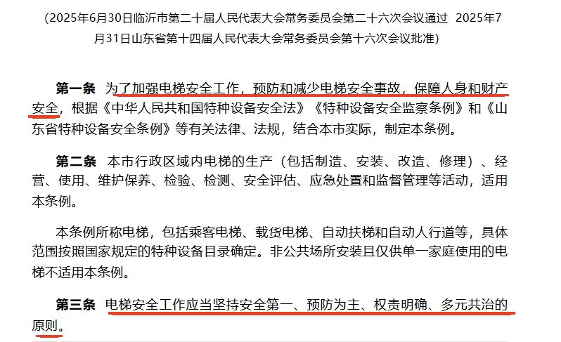2025年10月1日起,《臨沂市電梯安全條例》已正式施行,為臨沂居民的乘梯安全提供了強有力的法治保障。